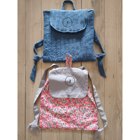 Sac cabas en tissu jacquard avecs des losanges gris sur fond écru, doublé en lin gris foncé.