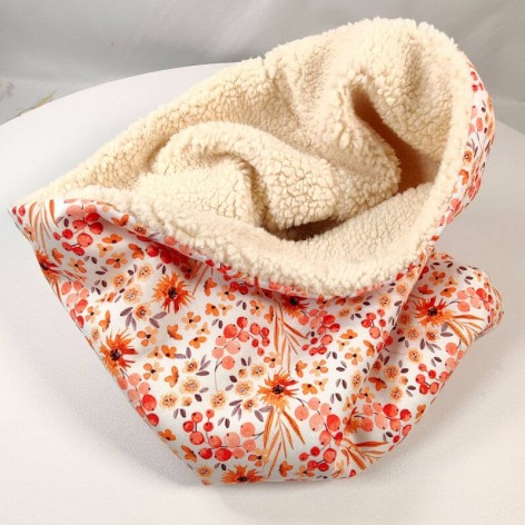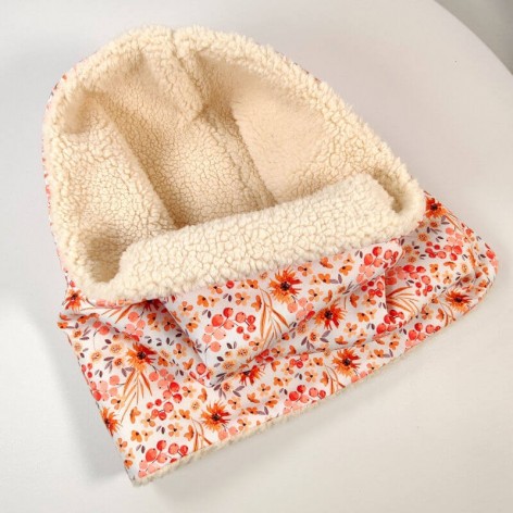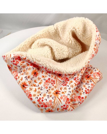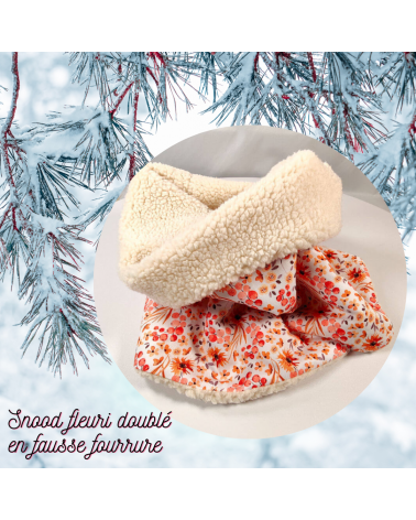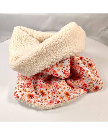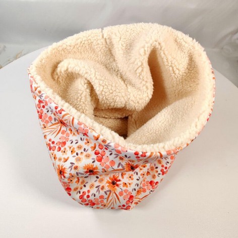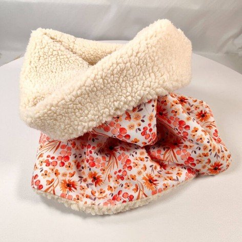 Snood pour femme en coton fleuri et doublé en fausse fourrure mouton (sherpa).