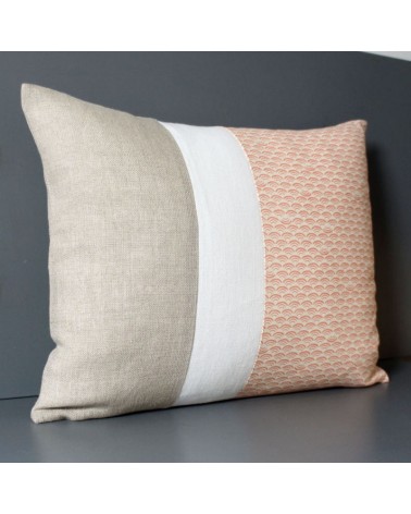 Coussin en lin naturel, lin blanc et coton imprimé