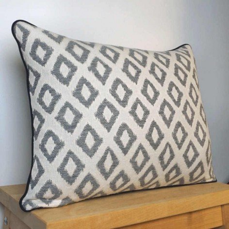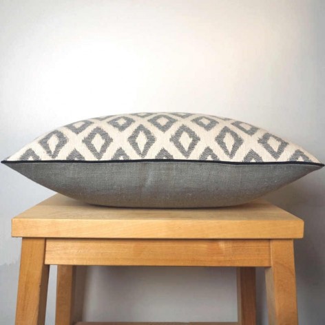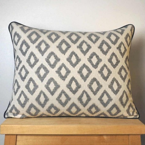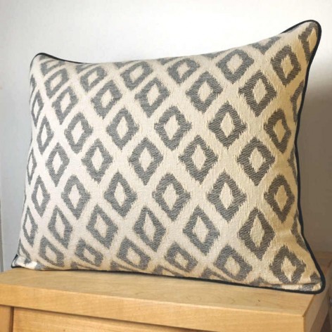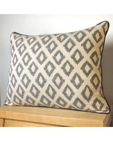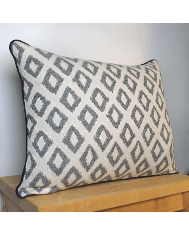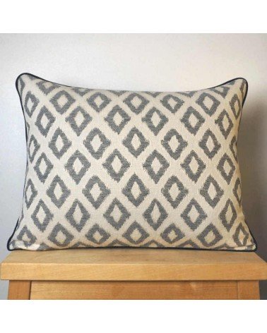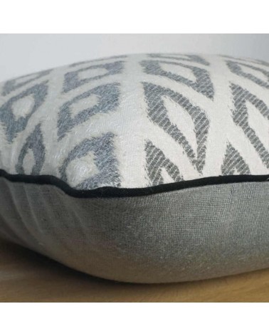 Coussin motifs géométriques passepoilé motif jacquard avec le dos en lin.