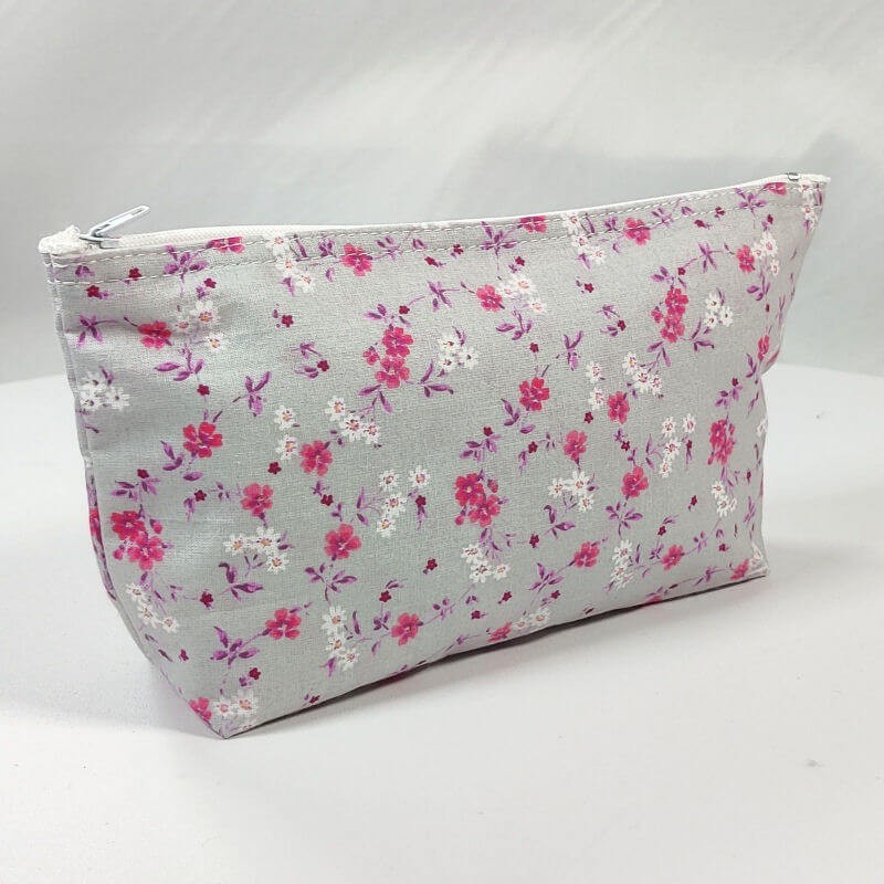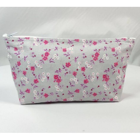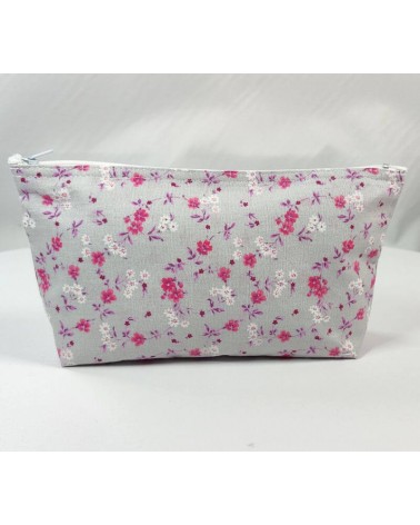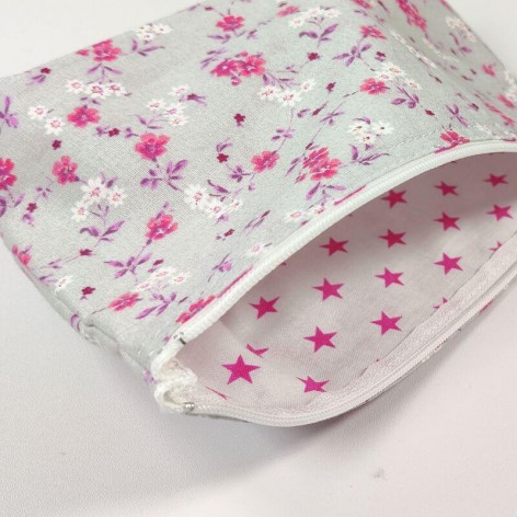 Trousse en coton fleuri, doublée en coton étoilé.