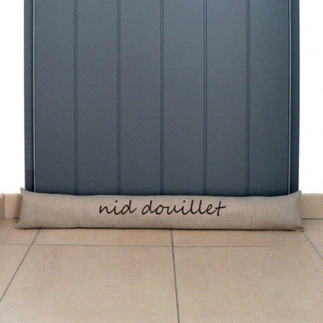 Boudin de porte en lin portant l'inscription «nid douillet», longueur au choix. Diamètre 9 cm environ.