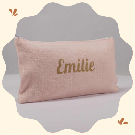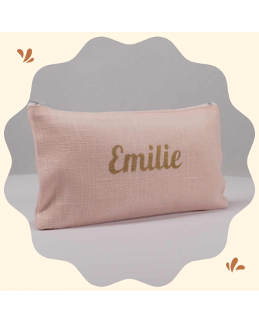 Trousse personnalisée en lin rose pâle