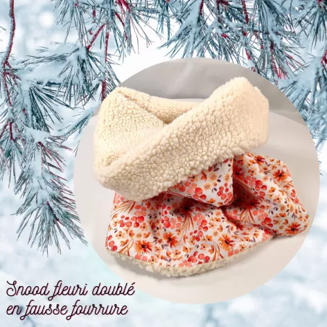 Snood pour femme en coton fleuri et doublé en fausse fourrure mouton (sherpa).