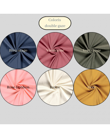- La double gaze de coton, tissu léger, ultra doux et respirant, composé de deux épaisseurs de gaze finement tissées. Son aspect naturellement froissé lui donne un charme bohème. Idéale pour apporter confort et élégance à vos moments de lecture.