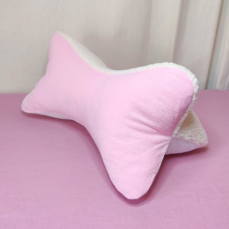 Coussin de lecture en double gaze de coton et fausse fourrure.