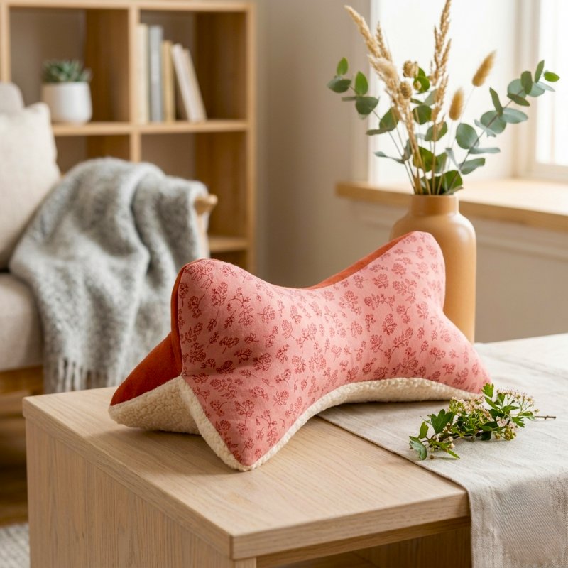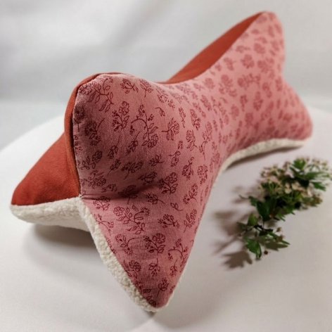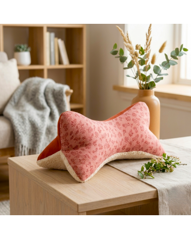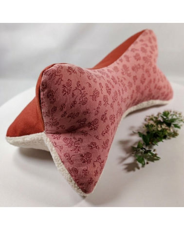 Coussin os de lecture double gaze fleurie, fausse fourrure et coton tomette