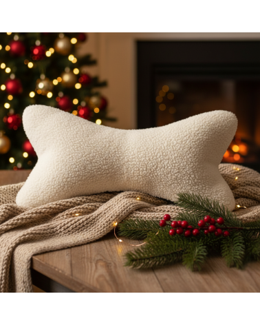 Coussin de lecture entièrement réalisé en fausse fourrure sherpa écrue.