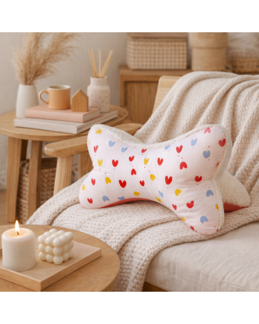 Coussin os de lecture motif coeurs