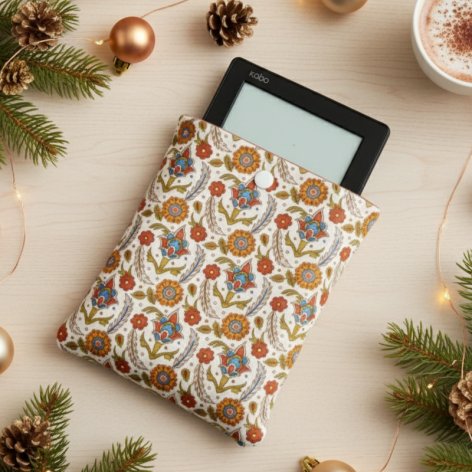 - La housse pour liseuse ou livre de poche mesure 22x17 cm. Elle est molletonnée et se ferme par un bouton pression.
