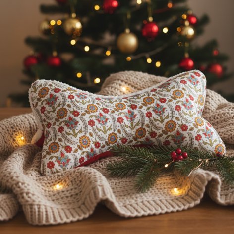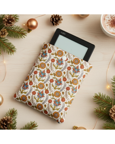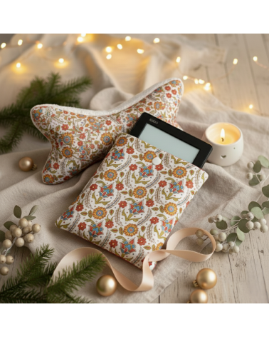 Ensemble cadeau coussin os de lecture et housse liseuse motif fleurs indiennes