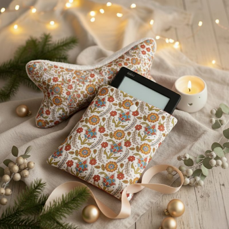 Offrez le luxe du fait main ! Ce coussin et sa housse de livre ou liseuse sont bien plus que de simples accessoires : c’est une invitation à la détente et au bien-être. Élégant, pratique et confortable, il est le cadeau parfait pour un amateur de livres ou pour toute personne cherchant un moment de douceur au quotidien.