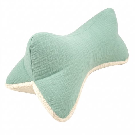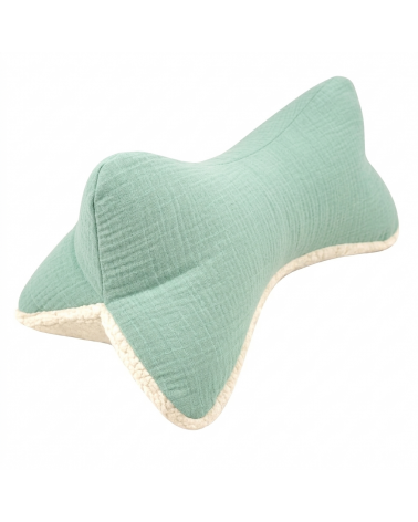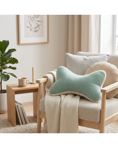 Coussin os de lecture gaze de coton vert céladon et sherpa