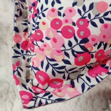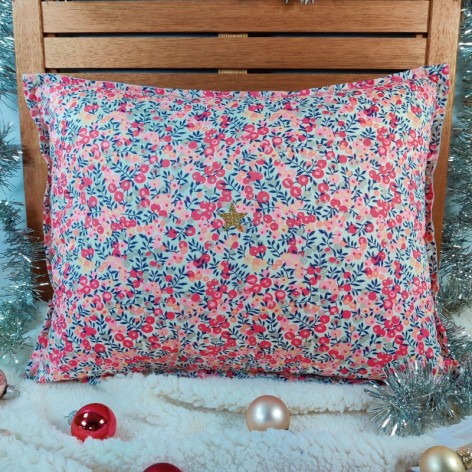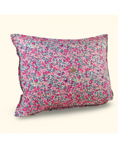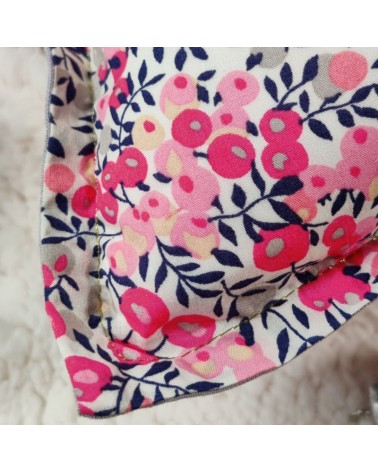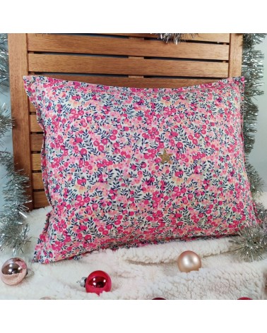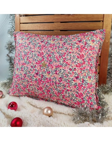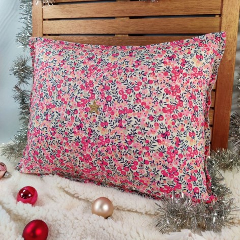 La palette de couleurs douces et harmonieuses du tissu Liberty crée une atmosphère chaleureuse et lumineuse. Les motifs délicats évoquent un jardin secret, ajoutant une dimension poétique à la décoration de la chambre. Ce coussin devient ainsi bien plus qu'un simple accessoire ; il devient une ode à la beauté naturelle et à l'innocence de l'enfance.