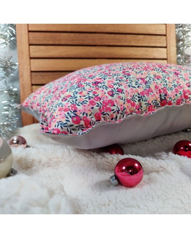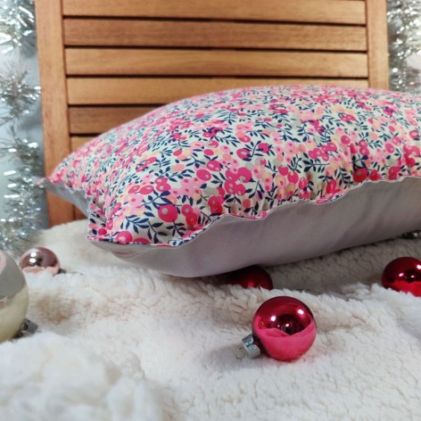Coussin en Liberty Wiltshire, avec le dos en coton gris clair.