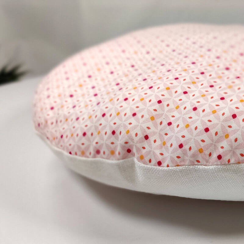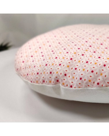 Coussin rond biface imprimé et lin blanc fait main