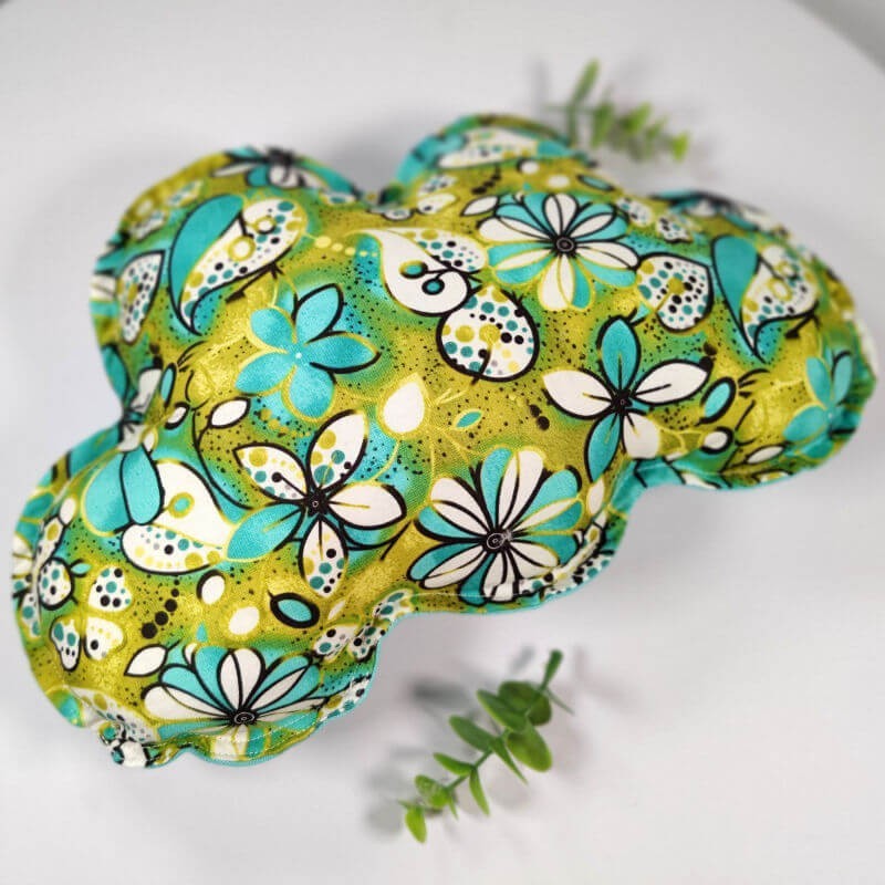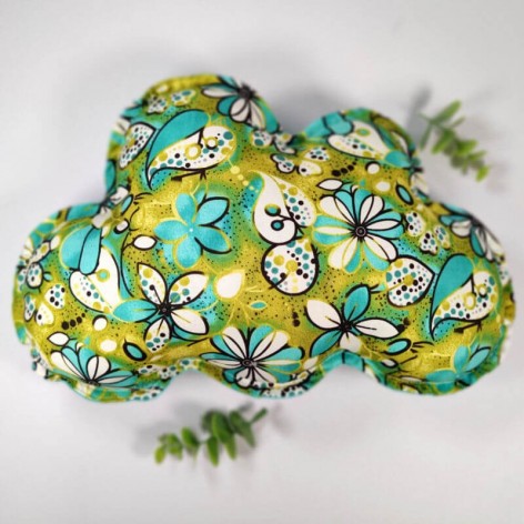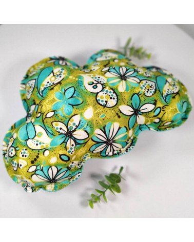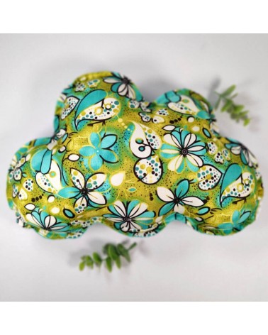 Coussin nuage en coton imprimé fleurs et feuilles dans les tons vert.