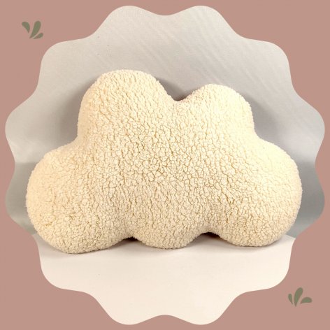 Ce coussin en forme de nuage est réalisé en fausse fourrure sherpa, douceur assurée dans une chambre de bébé ou d'enfant.