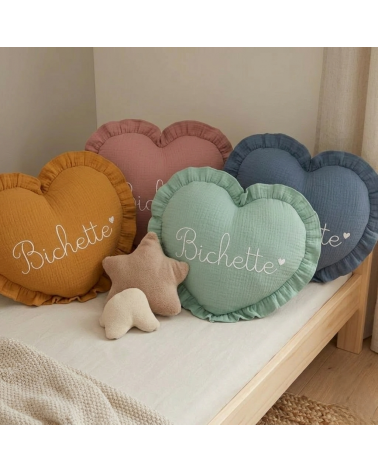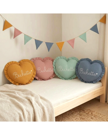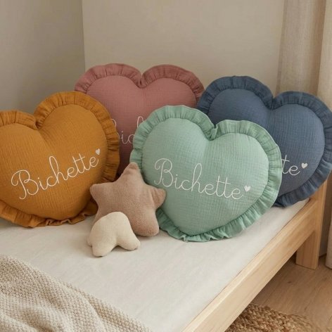 Coussin coeur à personnaliser avec un prénom, un mot…