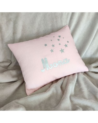 Coussin personnalisé prénom en lin rose pâle