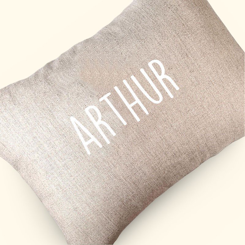 Ce coussin personnalisé en lin naturel agrémentera tout en douceur une chambre d'enfant ou de bébé.