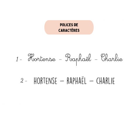 Plusieurs polices de caractères et de coloris d'inscription sont disponibles.
