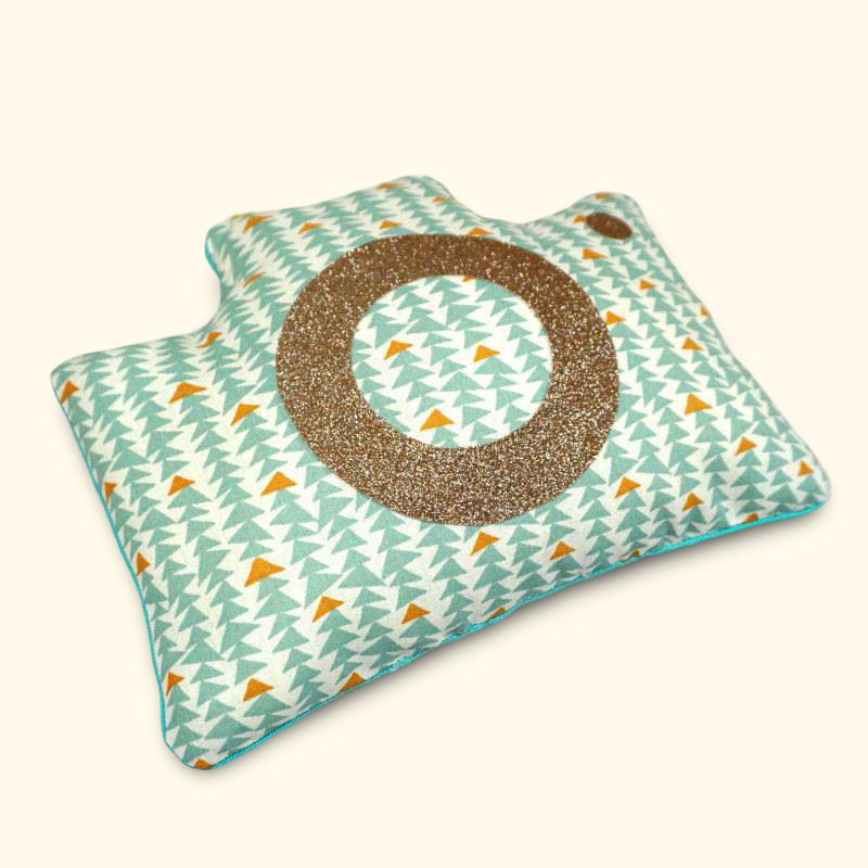 Ce coussin appareil photo apporte une touche originale dans la déco d'une chambre de bébé ou d'enfant !