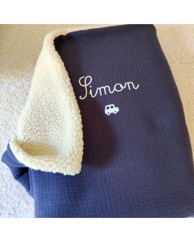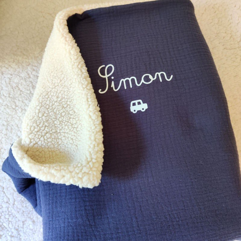 Nous avons créé une couverture en double gaze de coton et sherpa qui associe douceur, chaleur et personnalisation.