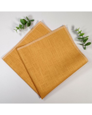 Serviette de table en lin jaune moutarde, 40x40 cm