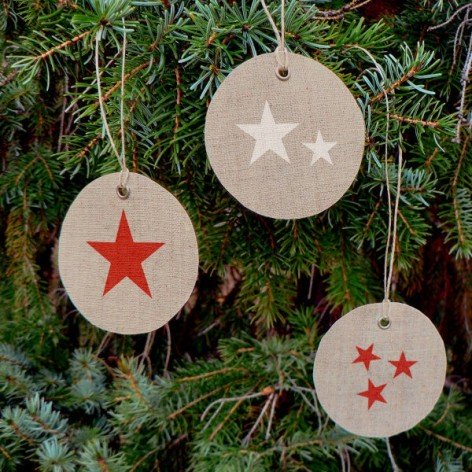 Ces boules de Noël en lin peuvent également servir à confectionner un ravissant paquet cadeau.