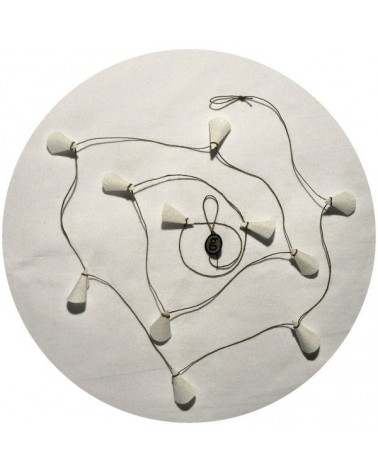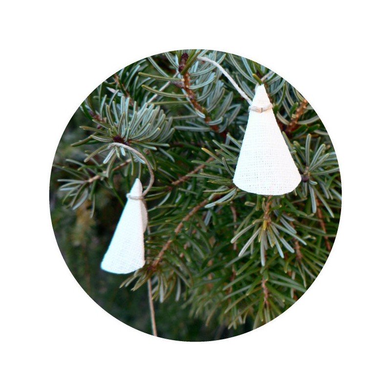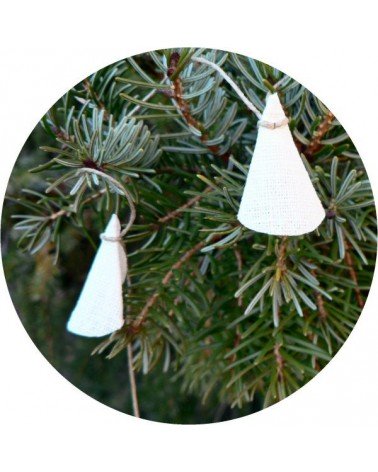 Cette guirlande est composée de petits cornets en lin blanc reliés entre eux par une cordelette en lin.