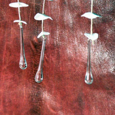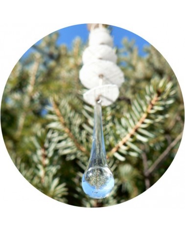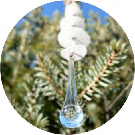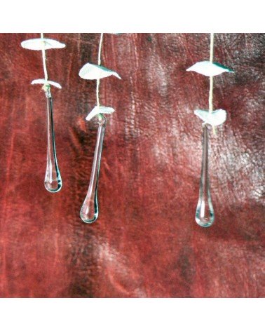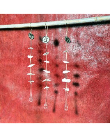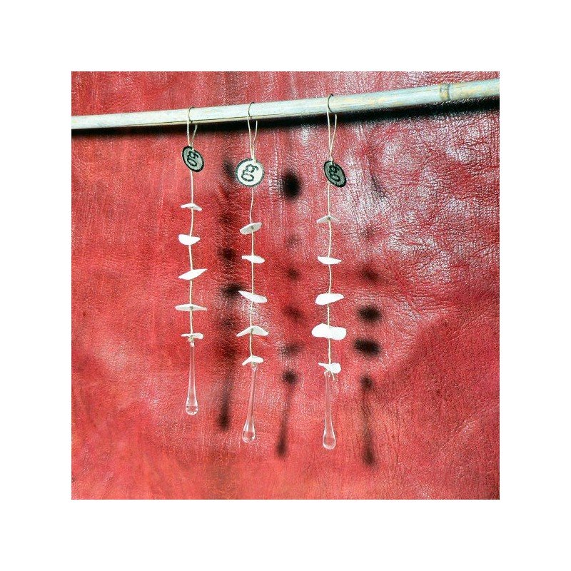 Ces petits stalactites stylisés sont composés de rondelles de lin blanc et d’une goutte d’eau en verre reliées par une cordelette de lin.