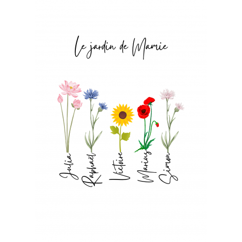 Affiche Le jardin de Mamie numérique personnalisée avec prénom petits enfants