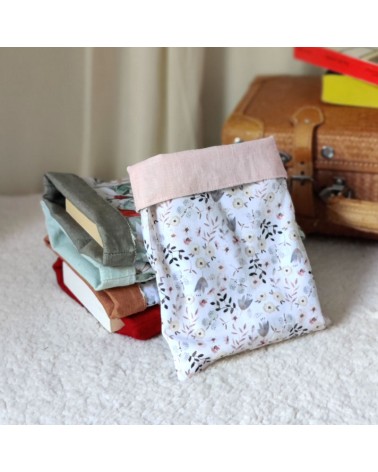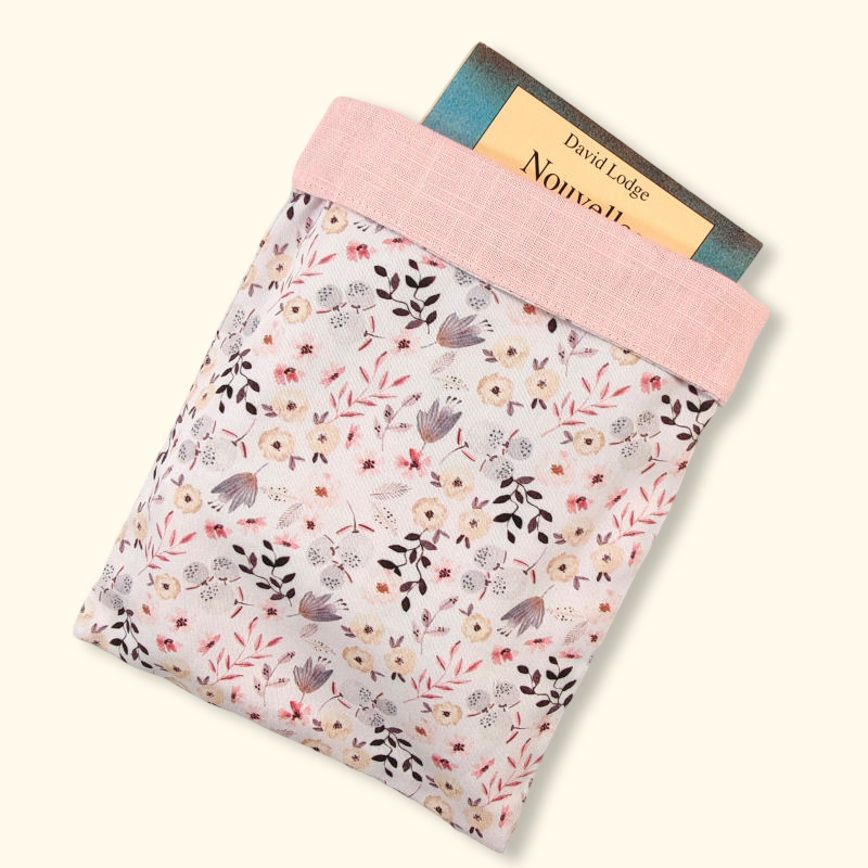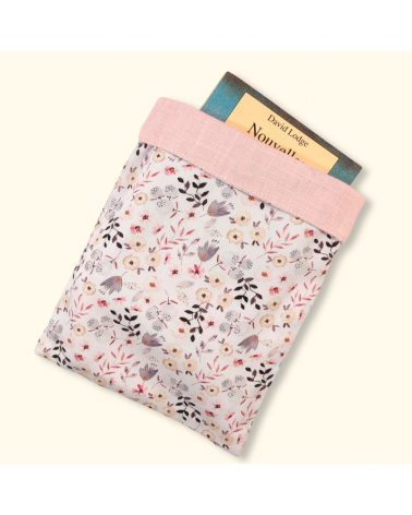 Housse de livre ou liseuse kobo kindle en coton fleuri et lin rose