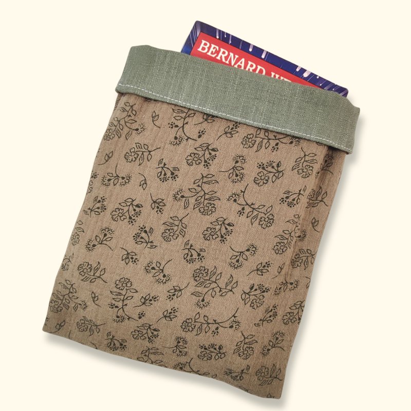 Etui liseuse kobo kindle réversible en double gaze et lin sauge