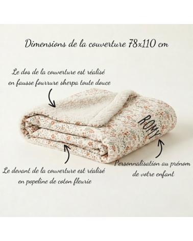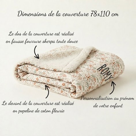 En plus du coussin, le kit comprend également une couverture enfant assortie, offrant une chaleur réconfortante pendant les moments de repos. Avec sa face en popeline de coton à carreaux vichy et sa face en moumoute, elle offre une sensation de douceur enveloppante. Comme le coussin, la couverture peut également être personnalisée.