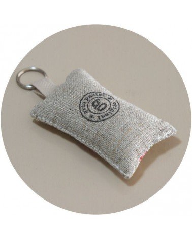 Porte-clé en lin et coton, un côté coton fond écru et fleurettes, dos en lin naturel.