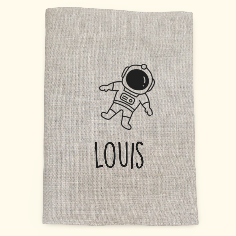 N'oubliez pas d'enregistrer vos choix pour pouvoir ajouter au panierProtège carnet de santé en lin personnalisé fille ou garçon, en lin décoré d'un astronaute.