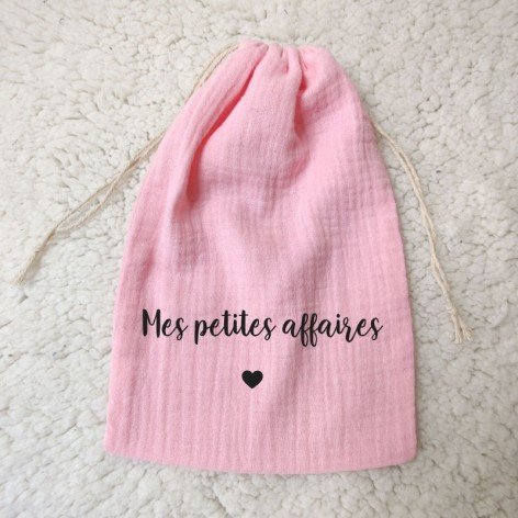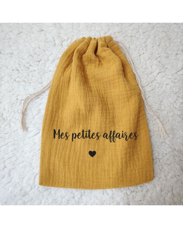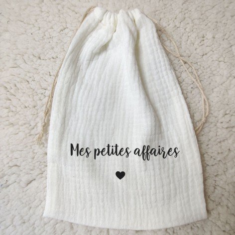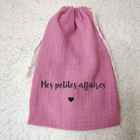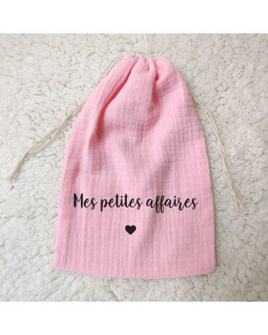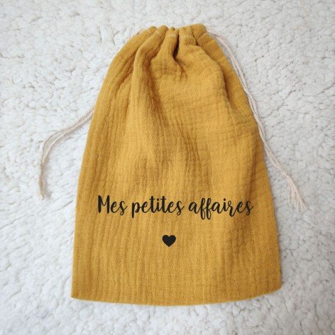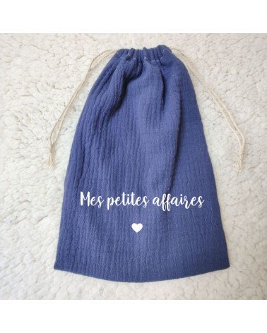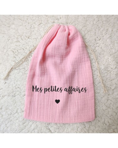 N'oubliez pas d'enregistrer vos choix pour pouvoir ajouter au panierSac pochon tenue de naissance en double gaze de coton, 6 coloris au choix.