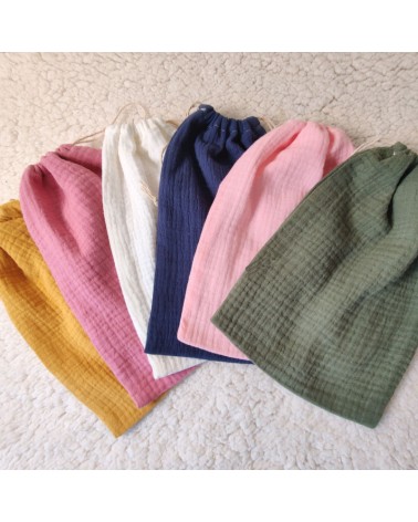 N'oubliez pas d'enregistrer vos choix pour pouvoir ajouter au panierSac pochon pour emballage cadeau en double gaze de coton, 6 coloris au choix.