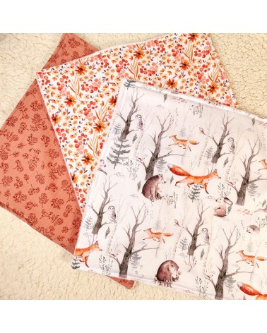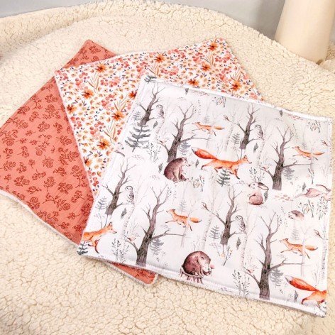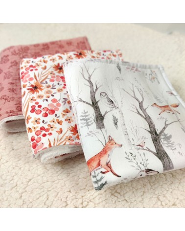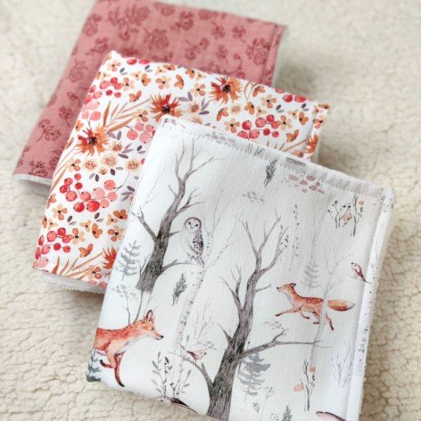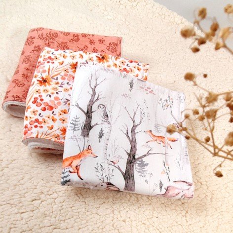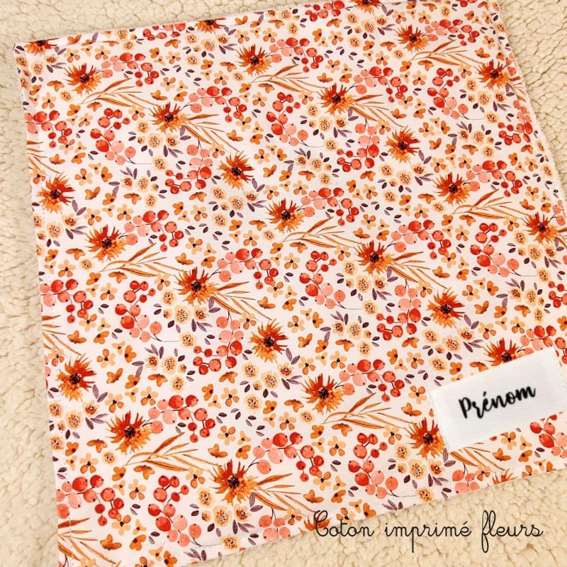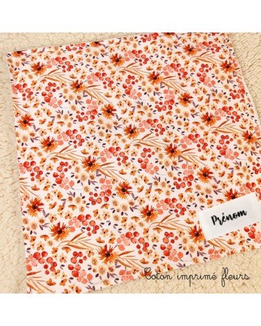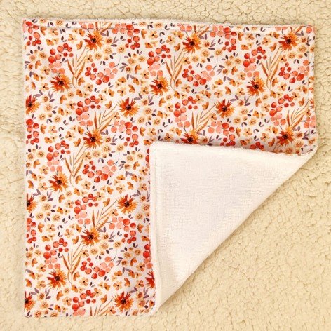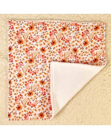 Le devant est réalisé en coton imprimé de fleurs, le dos est en éponge bambou blanche toute douce et surtout super absorbante !