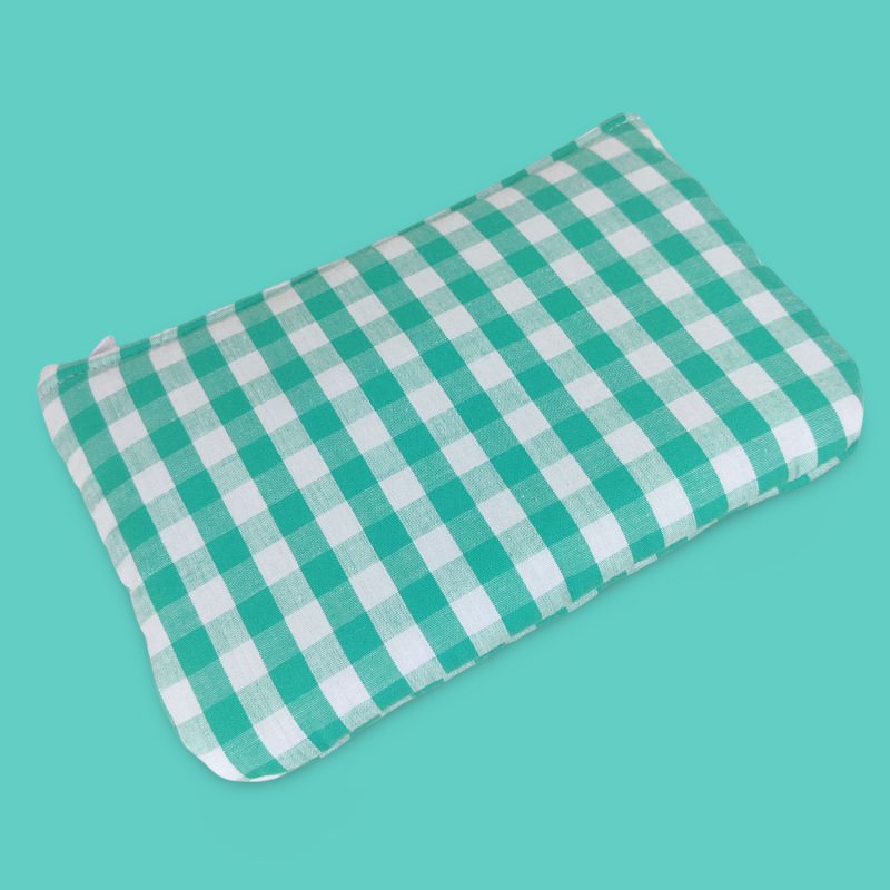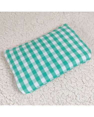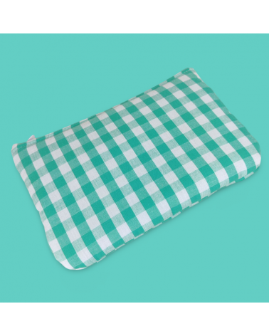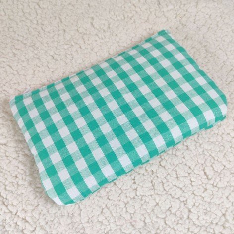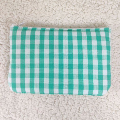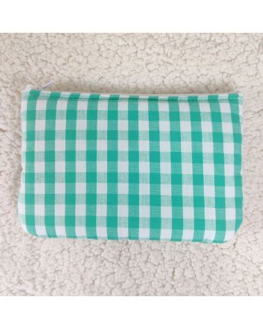 Petite pochette plate pour le maquillage ou les papiers, le téléphone... en coton vichy vert et doublée en coton vert d'eau.
