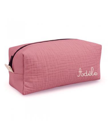 N'oubliez pas d'enregistrer vos choix pour pouvoir ajouter au panierTrousse de toilette molletonnée en double gaze de coton vieux rose, personnalisable avec un prénom.