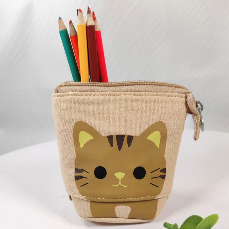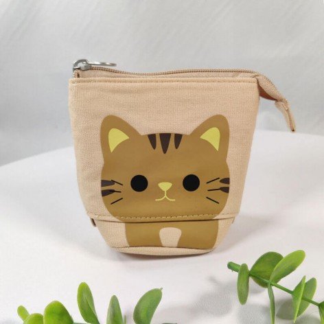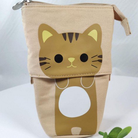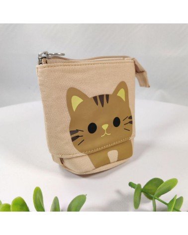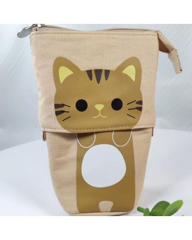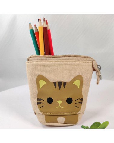 Trousse à crayons téléscopique motif chat, coloris sable.