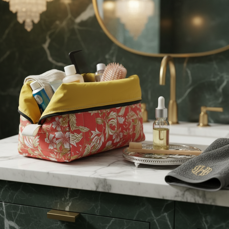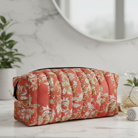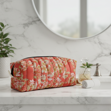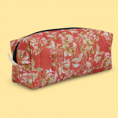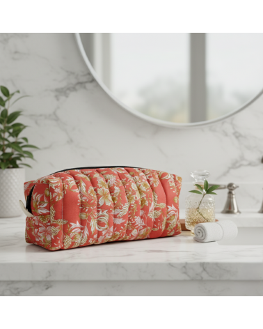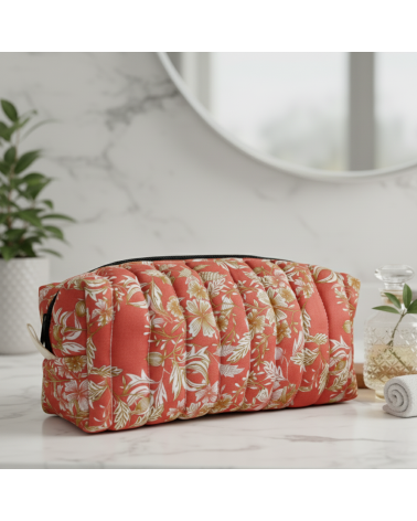 Trousse de toilette matelassée fleurs et feuilles