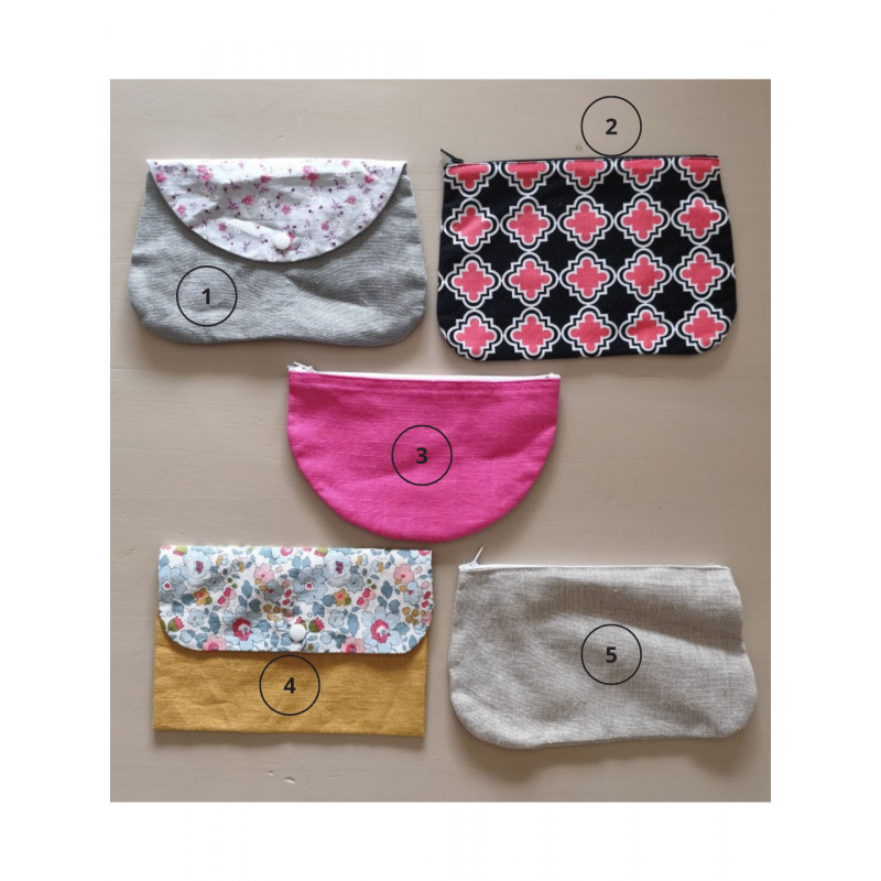 5 modèles de pochettes en tissu.