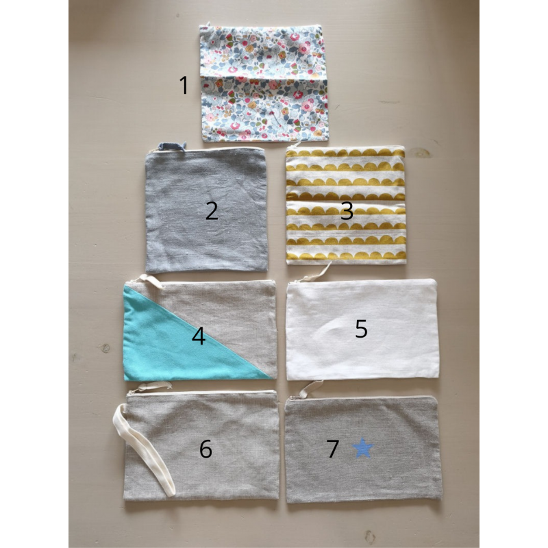 7 modèles de pochettes en tissu.